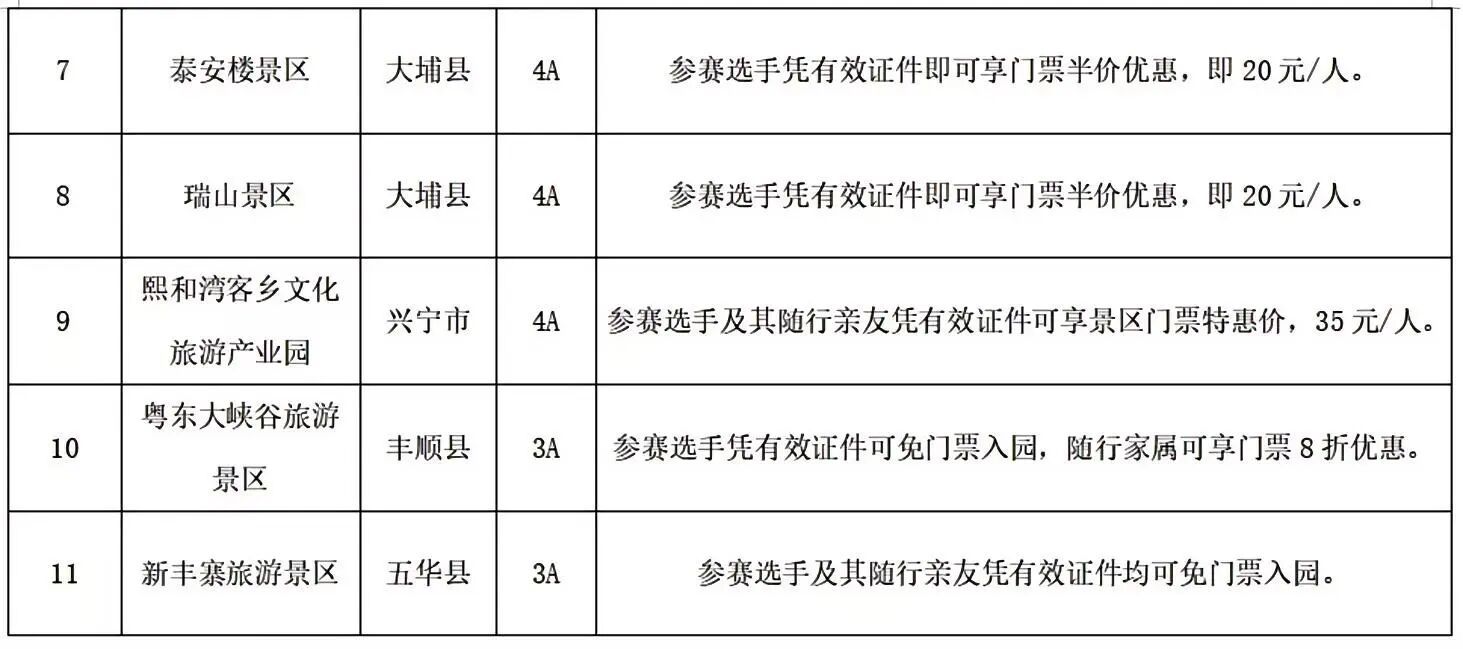优惠力度:参赛选手及其随行亲友凭有效证件可享景区门票特惠价,35元/人。